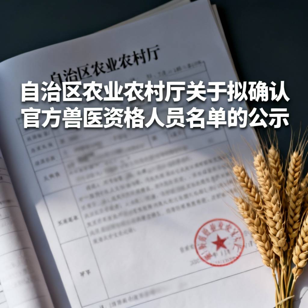 根据《中华人民共和国动物防疫法》《动物检疫管理办法》规定,按照《自治区农业农村厅关于开展官方兽医资格清理和确认工作的通知》要求,我厅组织对各市、县(市、区)农业农村主管部门报送的官方兽医资格申报材料进行了集中复审。经审核,共有142人符合官方兽医资格确认条件。现将拟确认官方兽医资格人员名单予以公示,公示时间为2024年2月1日至2024年2月5日(共5天)。