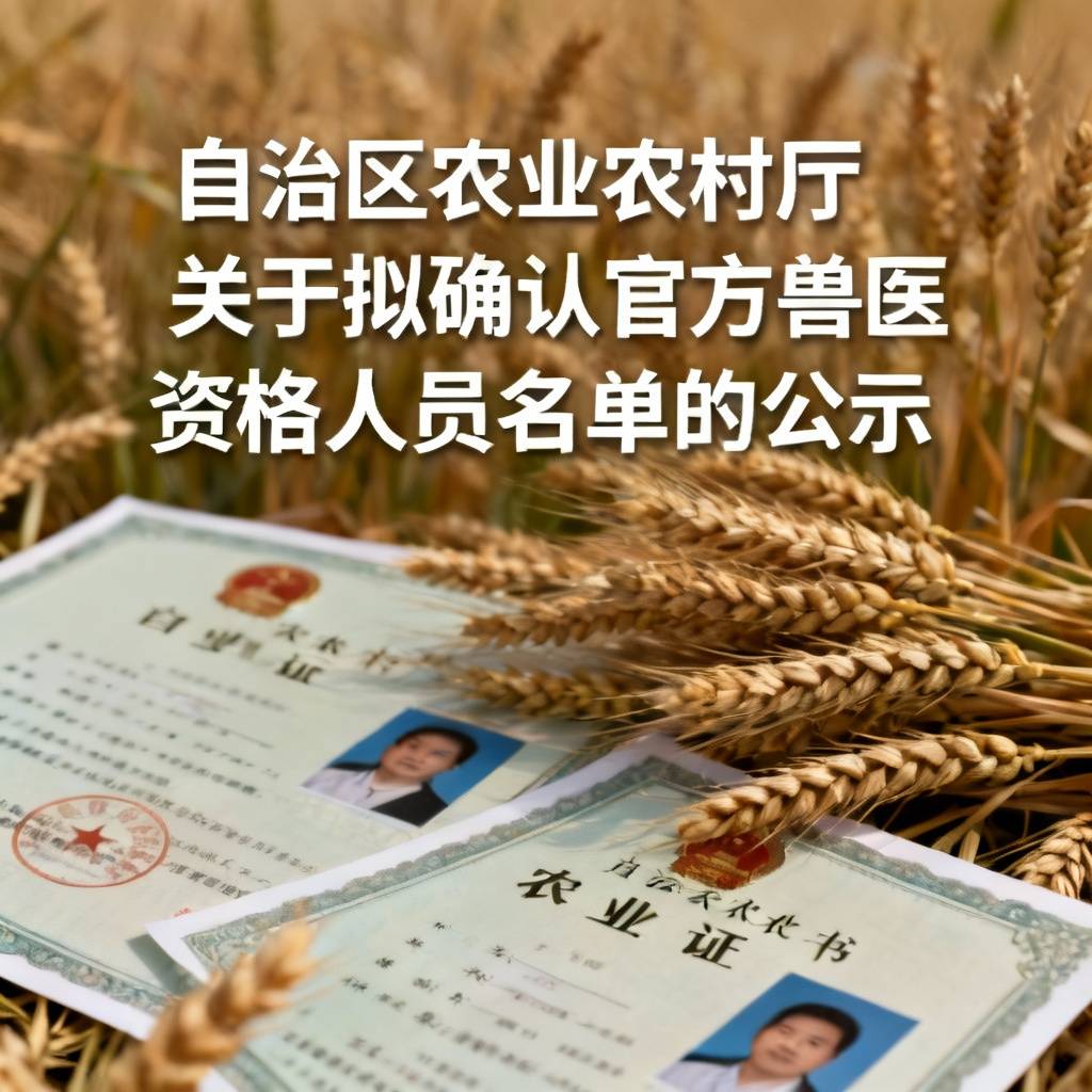 根据《中华人民共和国动物防疫法》《动物检疫管理办法》《自治区农业农村厅关于开展官方兽医资格清理和确认工作的通知》等要求,我厅组织对各市、县(市、区)农业农村主管部门报送的官方兽医资格申报材料进行了集中复审。经审核,共有155人符合官方兽医资格确认条件。现将拟确认官方兽医资格人员名单予以公示,公示时间为2024年12月26日至2024年12月30日(共5天)。