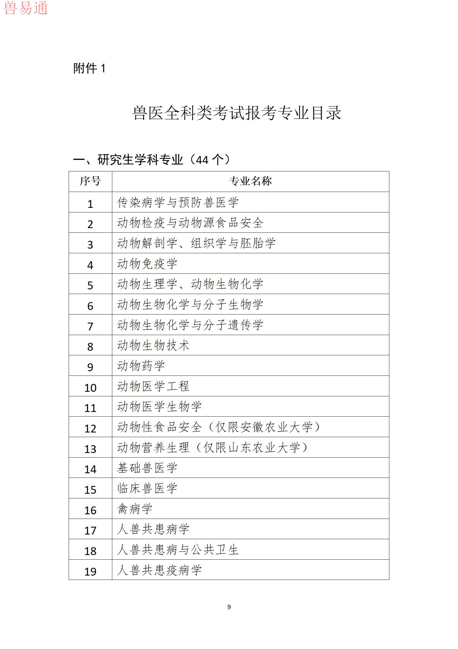 (一)具有大学专科以上学历的人员或全日制高校在校生,专业符合兽医全科类报考专业目录(附件1)的,可以报名参加兽医全科类考试。