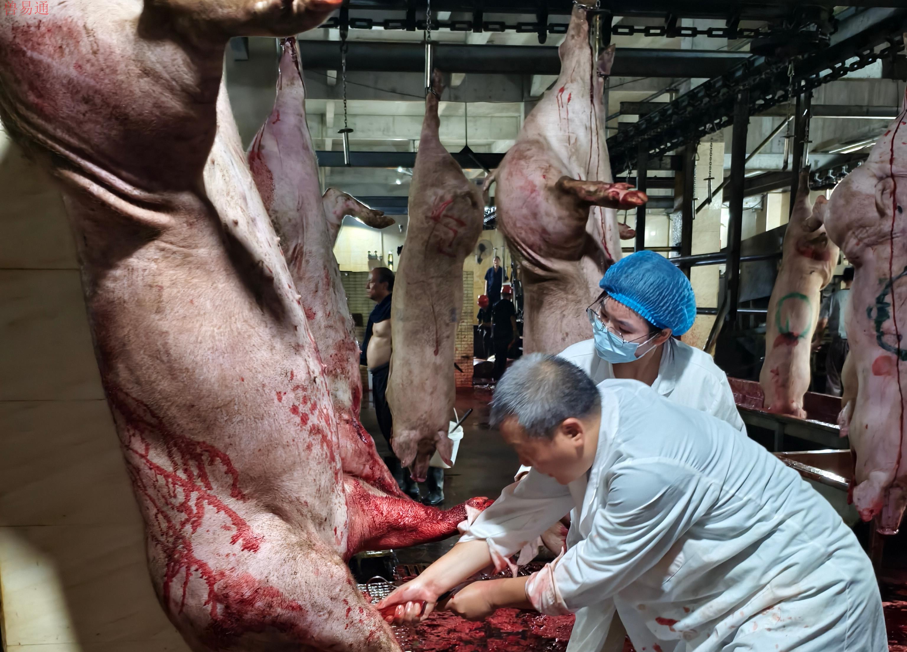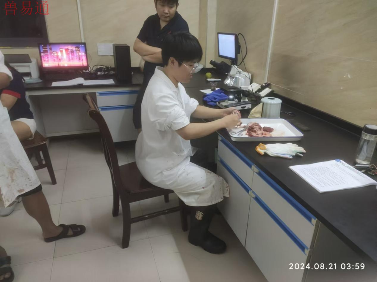 培训期间,荆州市动植物检疫检测中心副主任魏龙现场示范和指导。培训人员每天凌晨零点起床,克服高温天气影响,按照生猪屠宰流程开展头蹄、咬肌、脾肠胃、心肺肝、胴体、寄生虫镜检岗位训练。