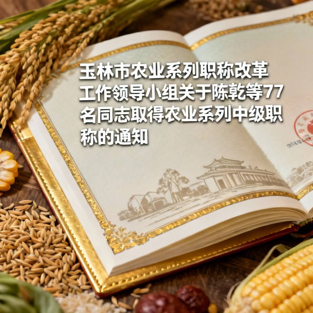 根据《玉林市职称改革工作领导小组关于同意确认陈乾等93名同志取得农业系列中级职称的通知》(玉市职技字〔2025〕2号),同意陈乾等77名同志取得农业系列中级专业技术资格,取得时间从2024年12月算起。具体名单如下: