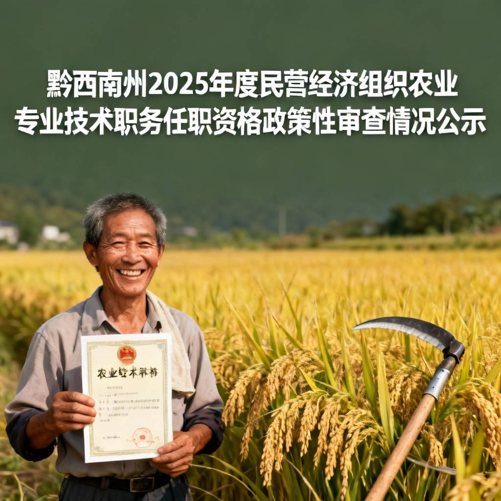 经专家组审核,黔西南州2025年度民营经济组织农业专业技术职务任职资格政策性审查未通过人员名单已在“贵州省人才人事公共服务平台”予以公示,公示期为2025年10月17日至10月23日。
