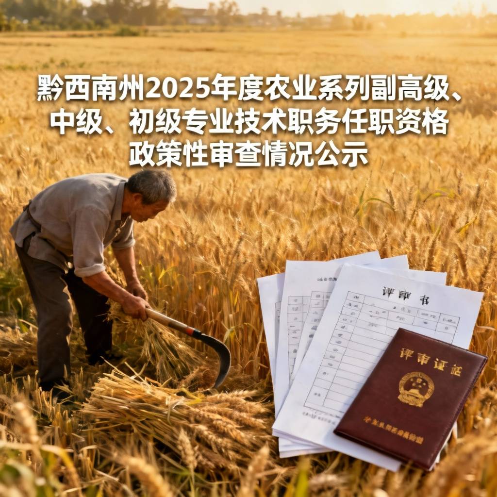 黔西南州2025年度农业系列副高级、中级、初级专业技术职务任职资格政策性审查情况公示