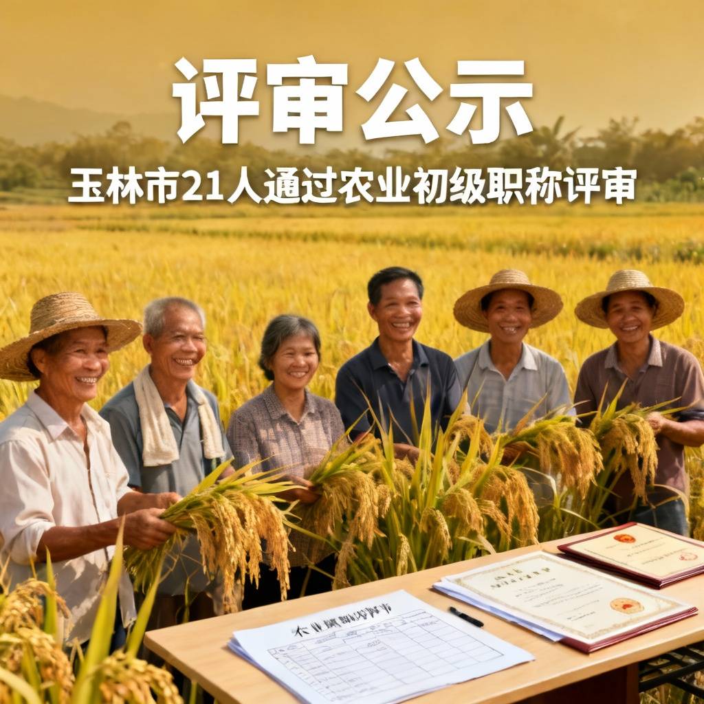 经玉林市农业系列中级专业技术资格评审委员会代评通过,同意傅兵等21名同志取得农业系列初级专业技术资格,取得资格时间从2025年12月算起。具体名单如下: