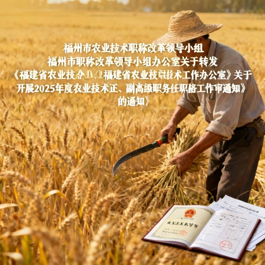 为了做好2025年度全市农业技术正、副高级职务任职资格的评审工作,现将《福建省农业技术职称改革领导小组 福建省职称改革工作办公室关于开展2025年度农业技术正、副高级职务任职资格评审工作的通知》(闽农职改﹝2025﹞3号)转发给你们。