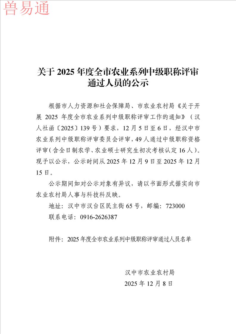 按照《关于汉中市区域性农机社会化服务中心培育行动方案(2024-2027年)》(汉农发〔2024〕18号)要求,经主体自主申报,县区农业农村局审核推荐,市农业农村局实地核查及综合评审,拟定我市10家经营主体为2025年市级现代区域综合农事服务中心。现予以公示,公示时间为2025年11月27日至2025年12月4日,监督电话:0916-2639802。附件:市级现代区域综合农事服务中心公示名单汉中市