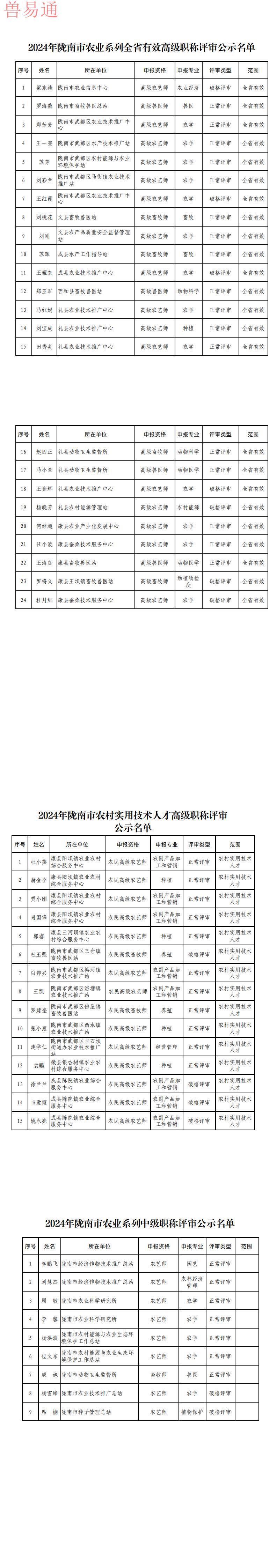 附件:1.2024年陇南市农业系列全省有效高级职称评审公示名单