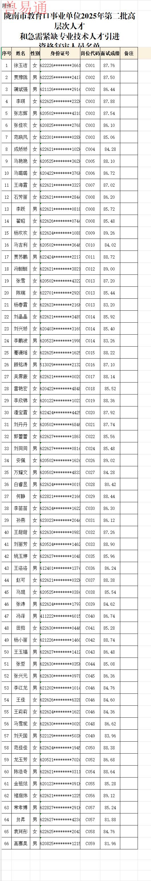 1.2026年应届毕业生资格复审材料:个人有效身份证、就业推荐证明材料(包含毕业生姓名、学历、学位、专业、毕业时间等基本信息及能否按时毕业和教师资格证取得意见,加盖院校公章)、学信网下载的有效期内学籍在线验证报告,及岗位所要求的其他证明材料。