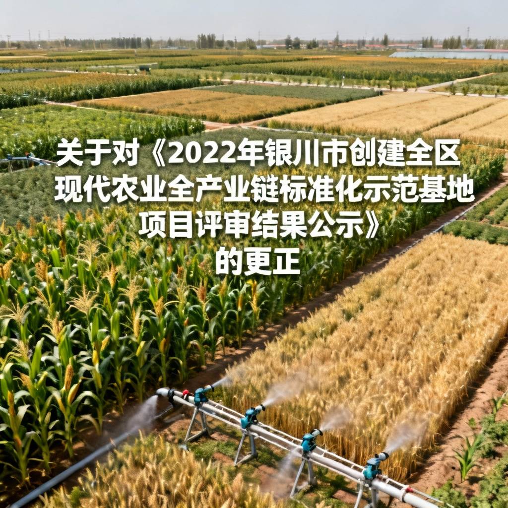 ????因2022年11月18日公示的《2022年银川市创建全区现代农业全产业链标准化示范基地项目评审结果公示》个别企业名称有误,现予以重新公示,公示期为2023年1月5日-1月11日接受社会监督,公示期间如有异议,请拨打举报电话:5982449。