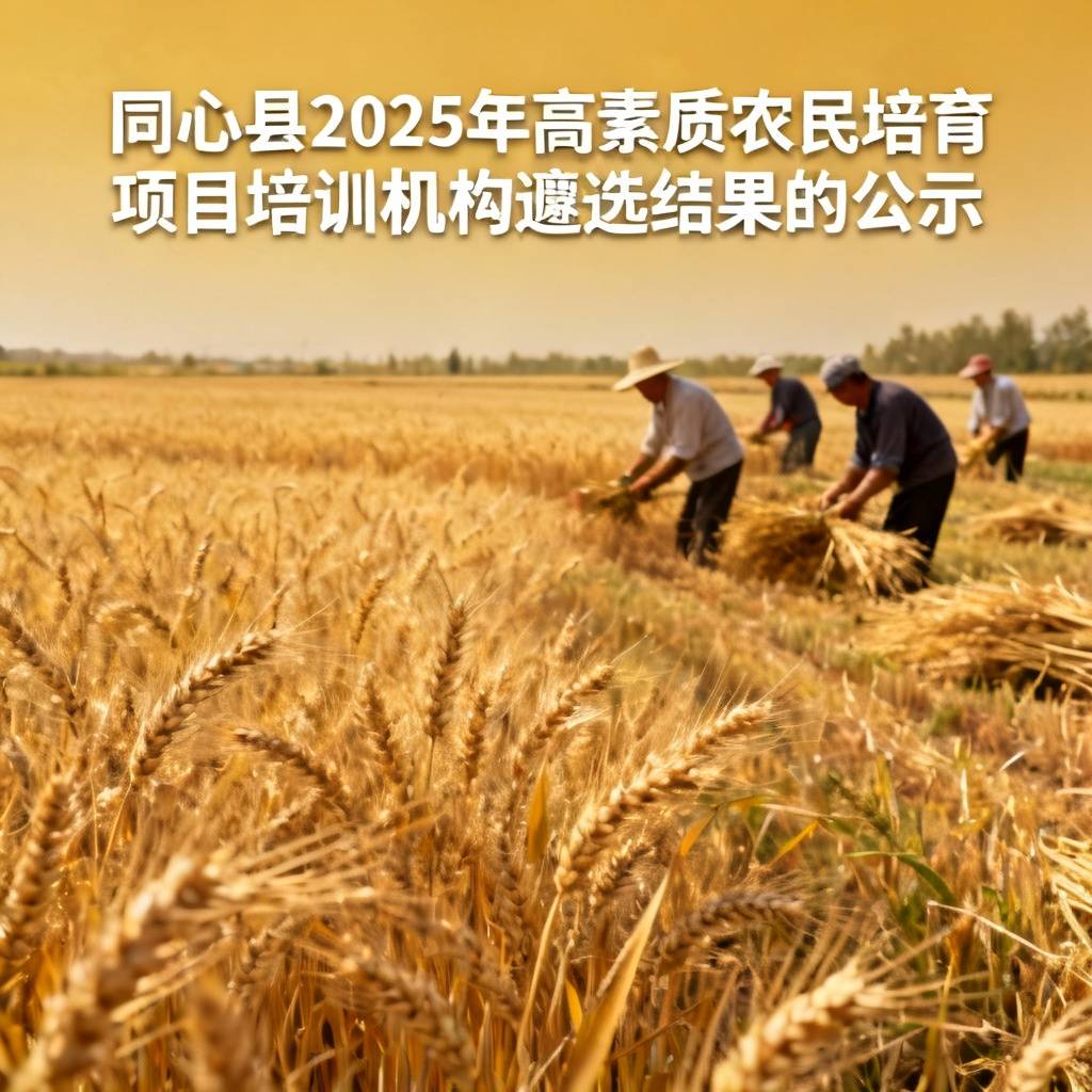 根据吴忠市农业农村局《关于印发2025年吴忠市高素质农民培育实施方案的通知》(吴农发〔2025〕22号)文件精神,安排同心县2025年高素质农民培育任务(常规班)205人,同心县农业农村局委托宁夏浩润佰鼎招标代理有限公司,按照同心县农业农村局关于《同心县2025年高素质农民培训项目实施方案》和《公开遴选同心县2025年高素质农民培训项目机构的通知》要求进行项目承担机构遴选。经组织综合评审拟推荐4家机构分别为:宁夏优品汇电子商务信息产业有限公司、宁夏天瑞产业集团现代农业有限公司、宁夏扶贫开发职业技能培训学校、固原市原州区彭堡镇宏科农民专业养殖合作社承担2025年高素质农民培训任务。