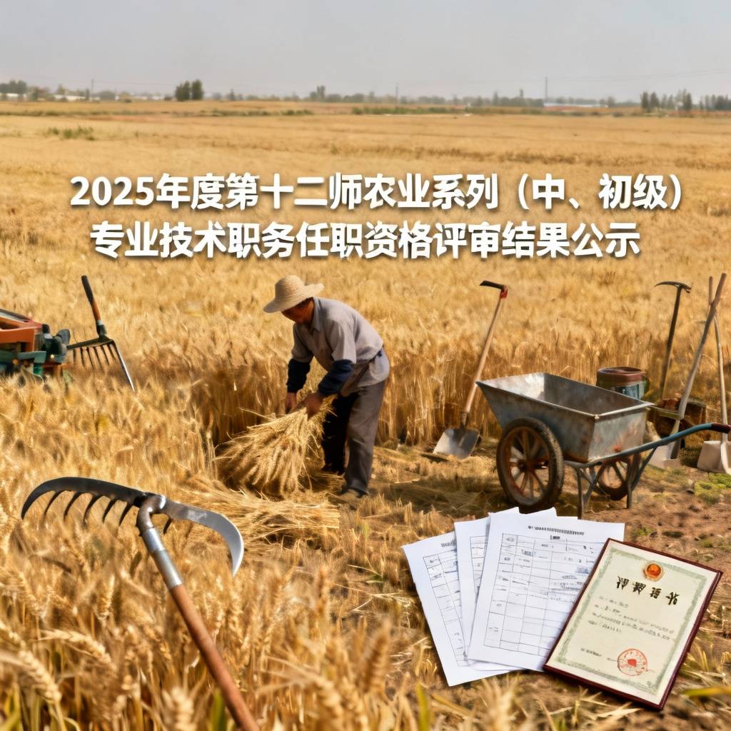根据2025年度第十二师农牧系列(中、初级)职称评审委员会评审结果。现将评审通过的13人(名单附后)进行公示。公示时间为5个工作日(2025年12月22日至2025年12月28日)。公示期间如对以上公示对象的职称评审有意见,可通过书面材料或电话向职改办反映。反映情况要坚持实事求是的原则,以便调查核实。
