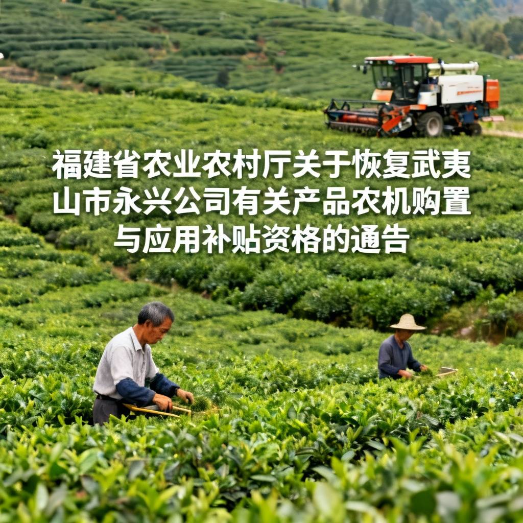 暂停期满后,武夷山市永兴公司于2025年9月30日提交恢复有关产品农机购置补贴资格的申请材料,对整改情况作了说明,对相关违规行为进行深刻反省,并作出相关承诺。经核实,武夷山市永兴公司已完成了相关整改并作出了相关承诺。经研究和政策教育宣贯等程序,决定于2025年4月11日起恢复武夷山市永兴公司YX-6CW30型、YX-6CW50型茶叶萎凋机在福建省的农机购置补贴资格,即从2025年4月11日起销售的武夷山市永兴公司YX-6CW30型、YX-6CW50型茶叶萎凋机可以享受农机购置与应用补贴。