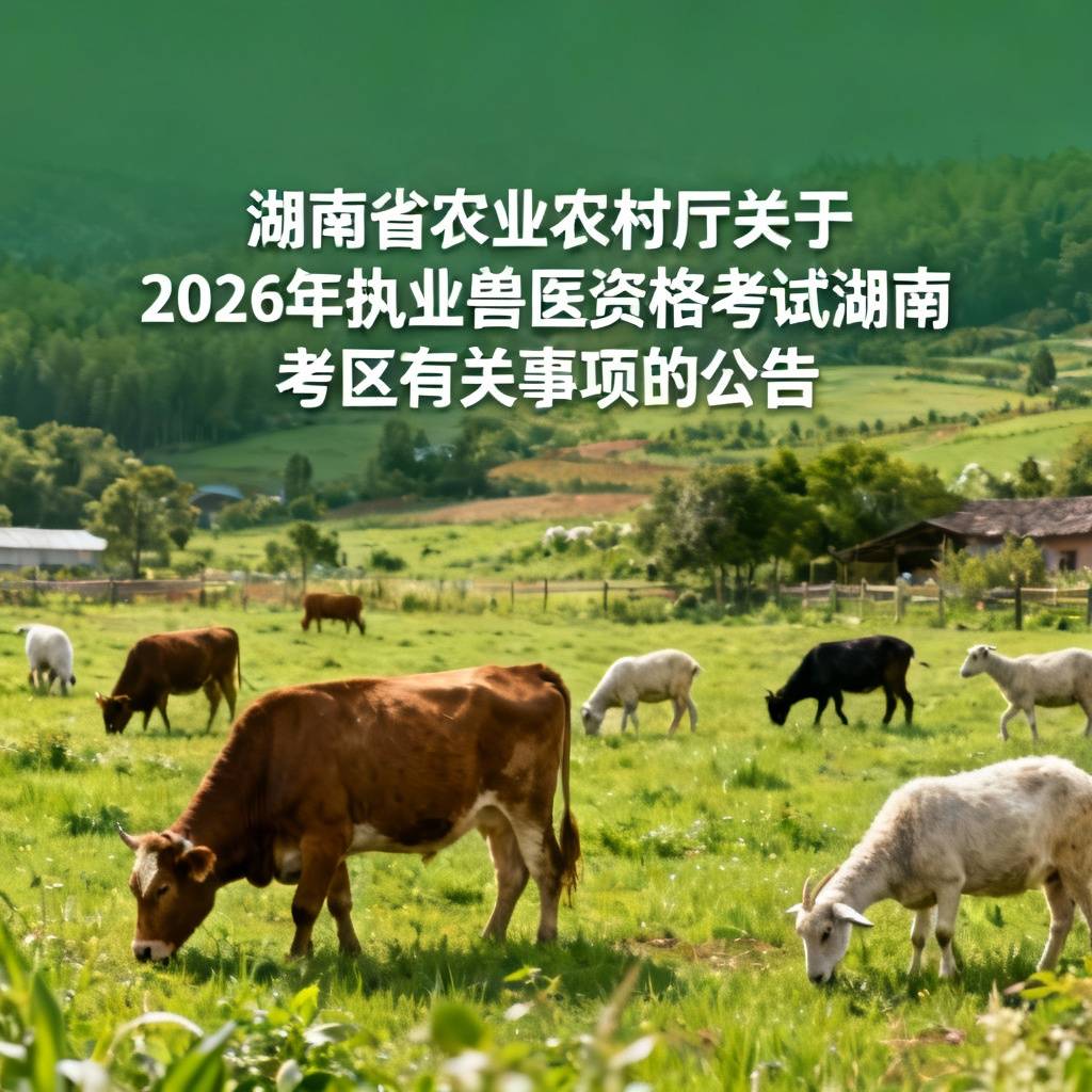 根据《中华人民共和国动物防疫法》和《全国执业兽医资格考试委员会公告》(农医考公告第37号),现就2026年全国执业兽医资格考试湖南考区有关事项公告如下。
