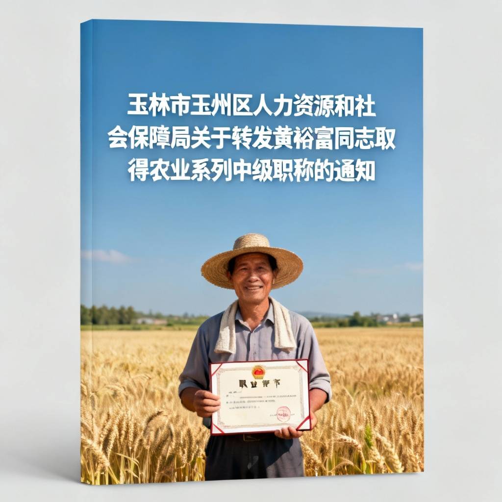 接玉林市农业农村局玉农职技字〔2026〕1号文,根据《玉林市人力资源和社会保障局关于同意确认张杰等102名同志取得农业系列中级职称的通知》(玉市职技字〔2026〕2号),同意广西参皇养殖集团有限公司黄裕富同志取得农业系列兽医师职称,取得时间从2025年12月算起。
