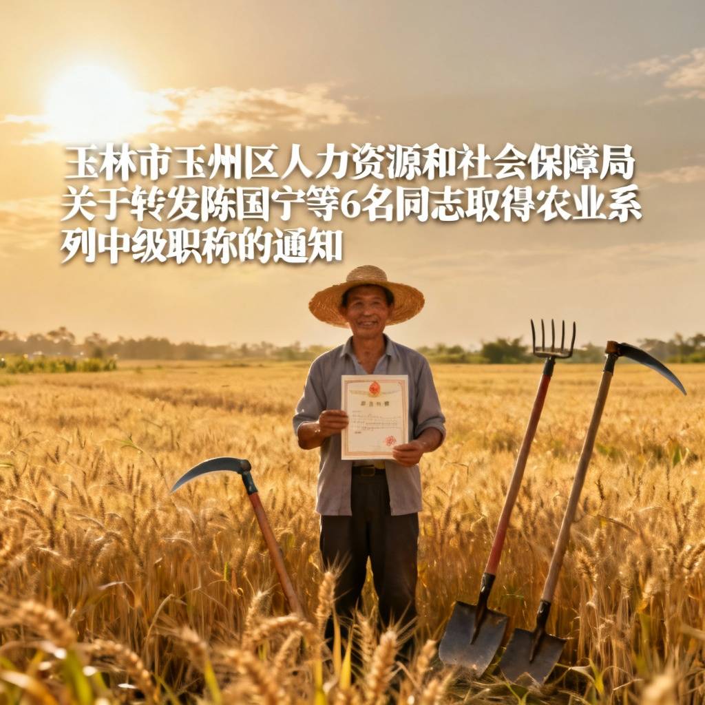 接玉林市农业农村局玉农职技字〔2026〕3号文,根据《玉林市人力资源和社会保障局关于同意确认张杰等102名同志取得农业系列中级职称的通知》(玉市职技字〔2026〕2号),同意我区陈国宁等6名同志取得农业系列中级专业技术资格,取得时间从2025年12月算起。具体名单如下: