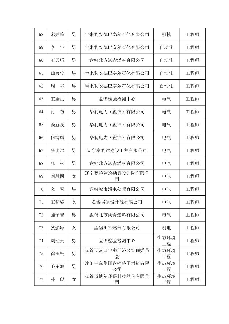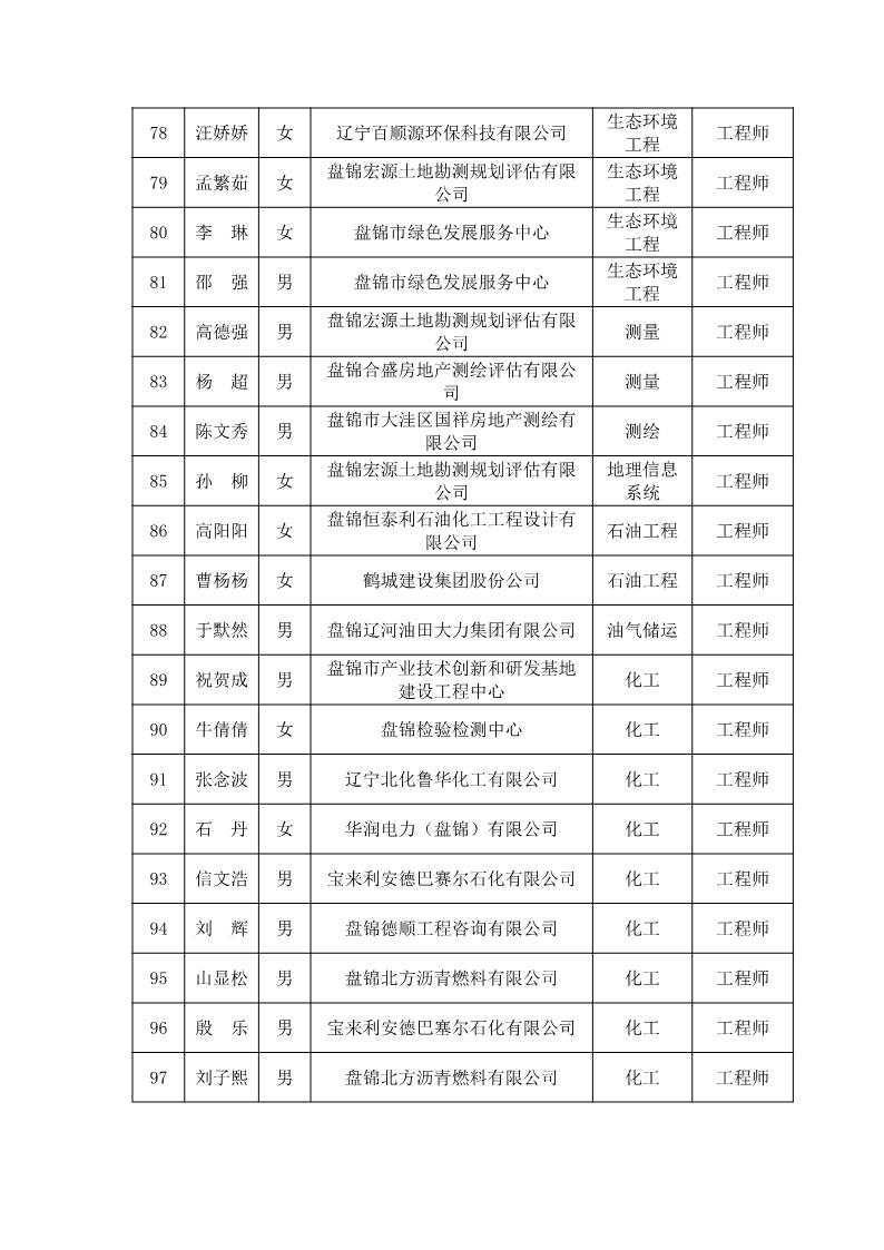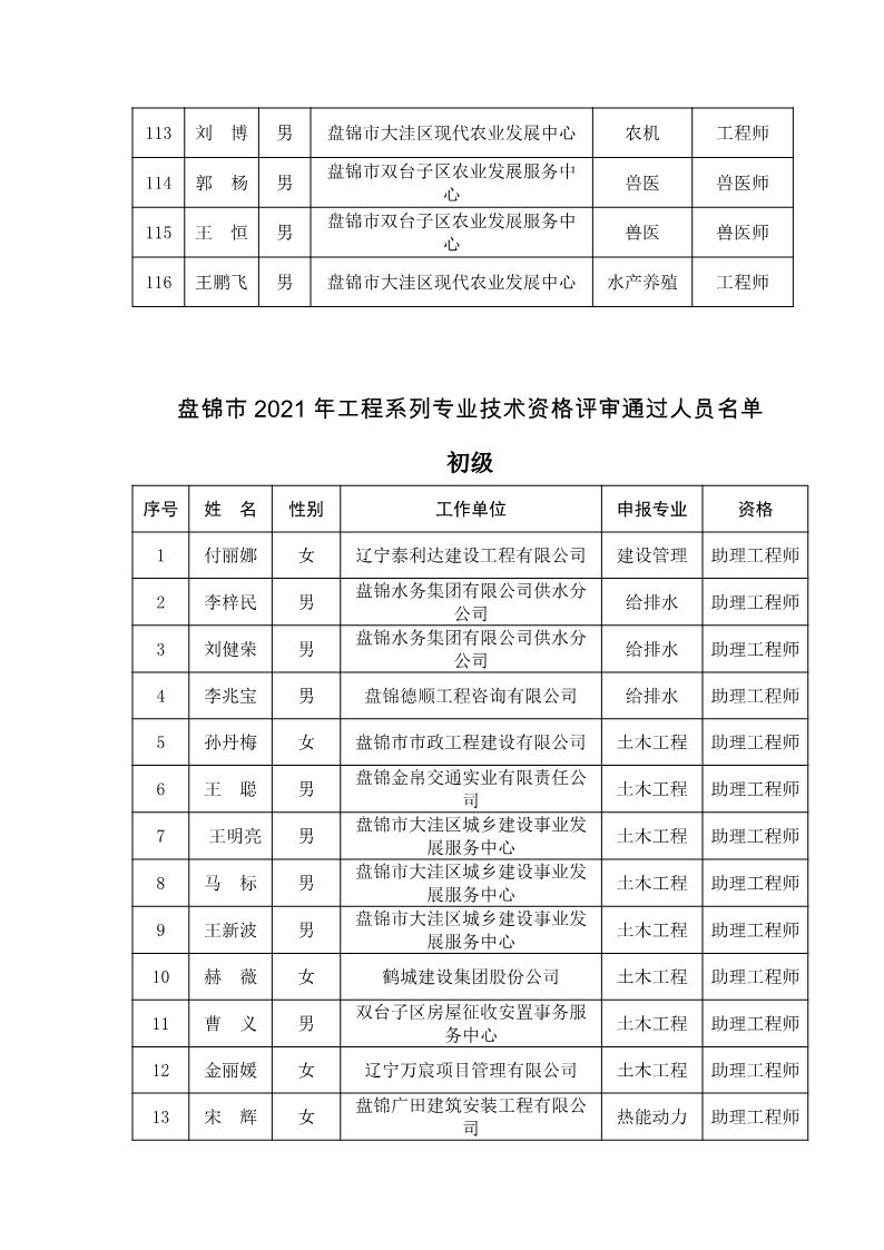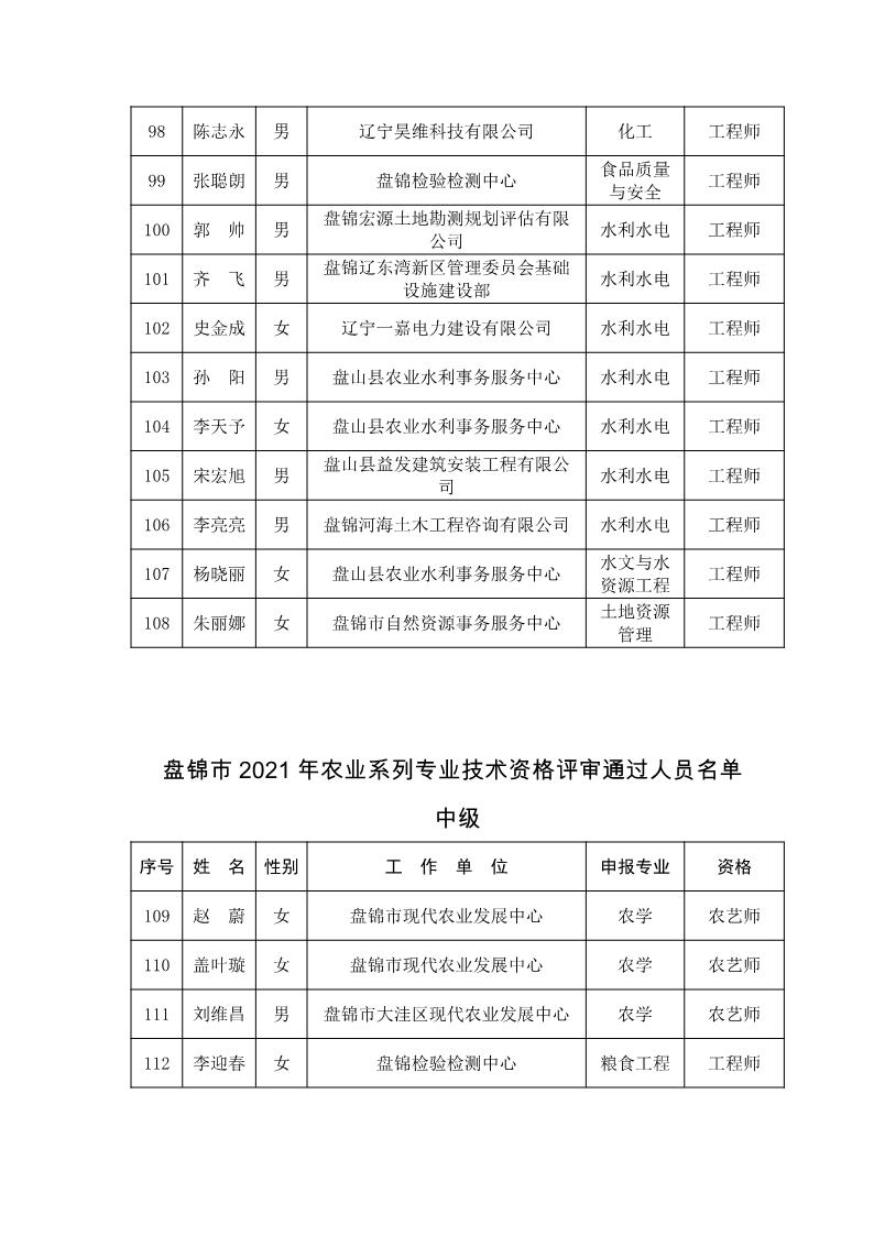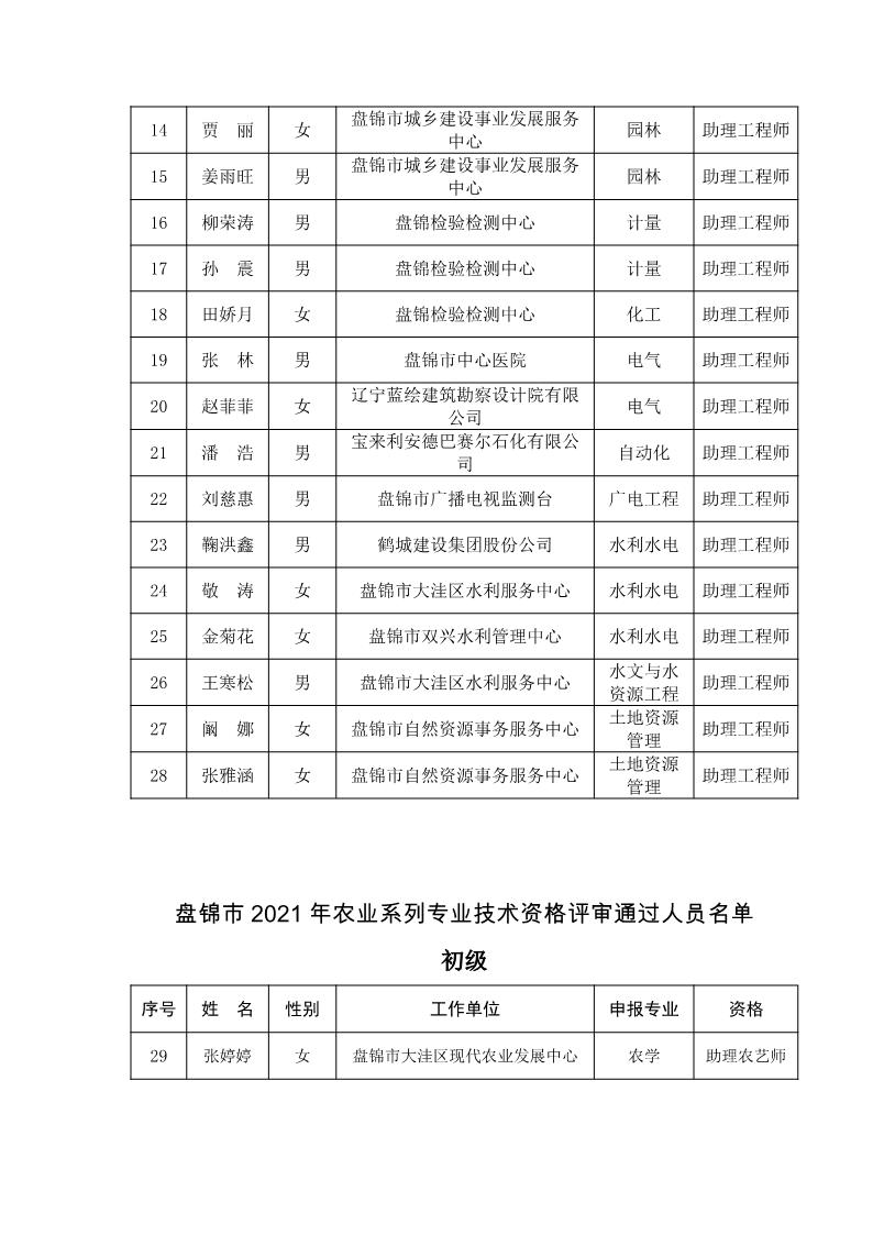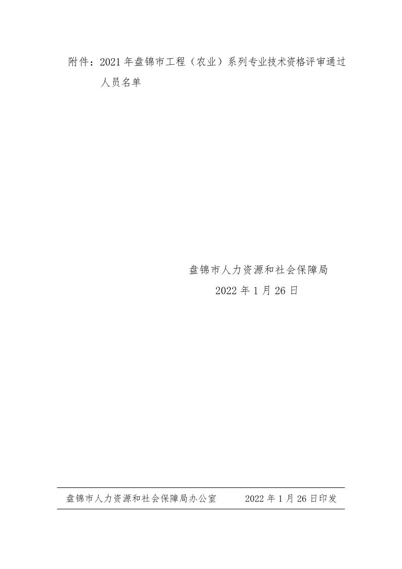 关于公布2021年盘锦市工程(农业)系列中初级专业技术资格评审通过人员的通知 盘人社发〔2022〕7号
