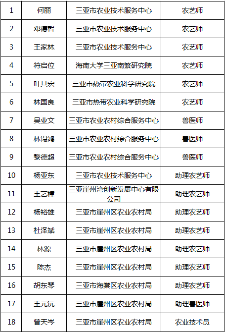 经2025年三亚市农业专业技术人员职称评审委员会评审和表决,社会公示期满无异议,现将2025年度取得农业专业技术资格人员名单予以公布。