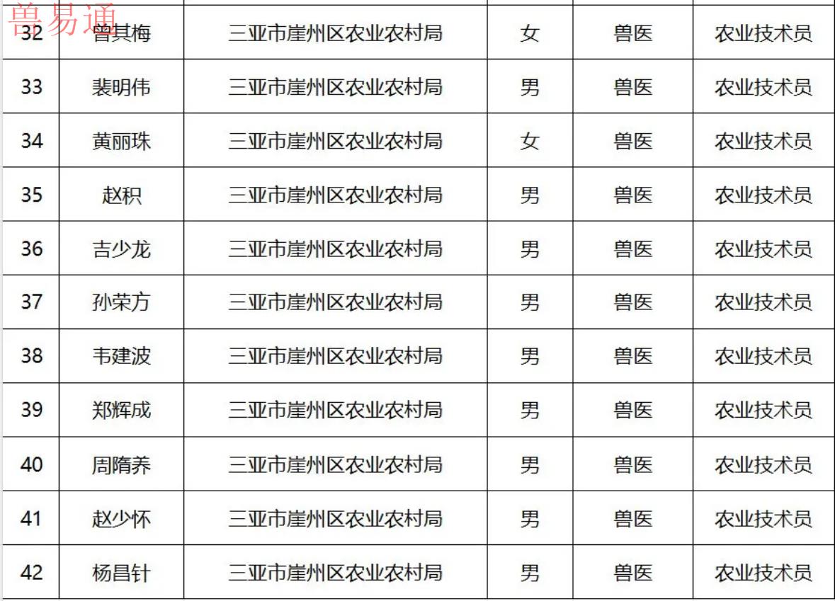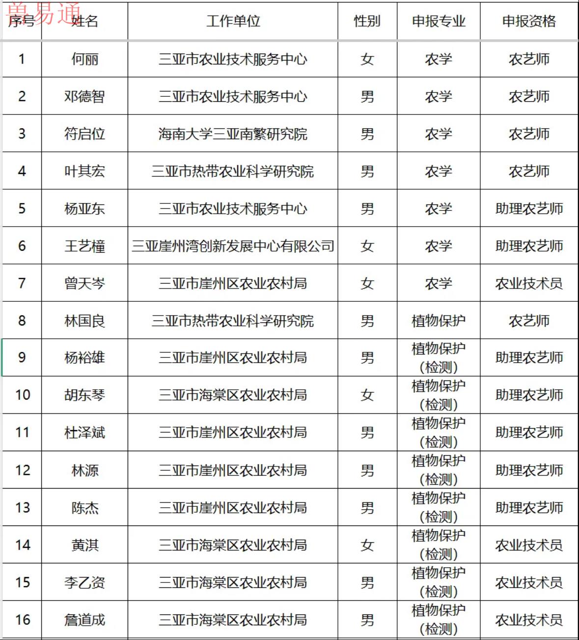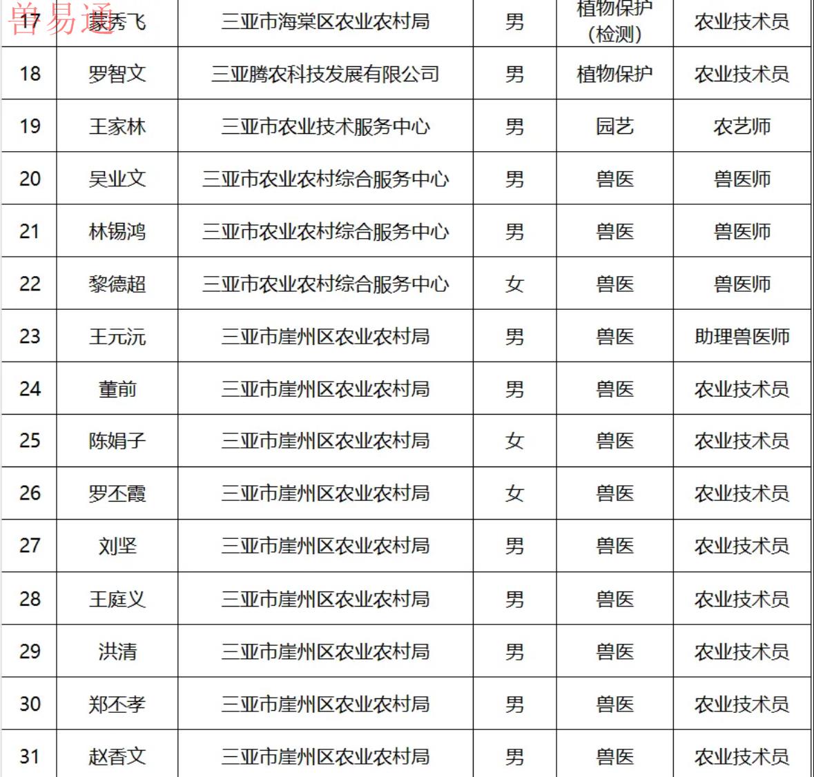 2025年度三亚市农业专业技术人员职称评审通过人员名单