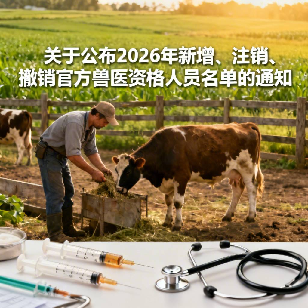 各市、县(区)自本公告发布之日起30日内,依法完成新增官方兽医资格人员的任命工作,同步将人员信息录入国家兽医卫生综合信息平台。对资格注销、撤销的人员,在系统提交审核后及时回收其官方兽医证件。各地要按要求组织官方兽医参加年度培训与考核,持续提升队伍专业素养和依法履职能力,确保动物防疫与检疫工作规范有序开展。