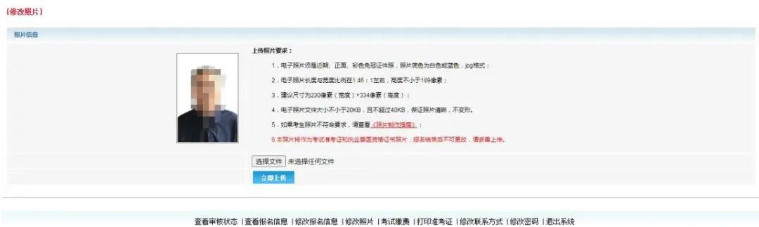 报考人员登录自助平台,可查询审核状态、查看报名信息、修改报名信息、修改照片、考试缴费、打印准考证、修改联系方式、修改密码。