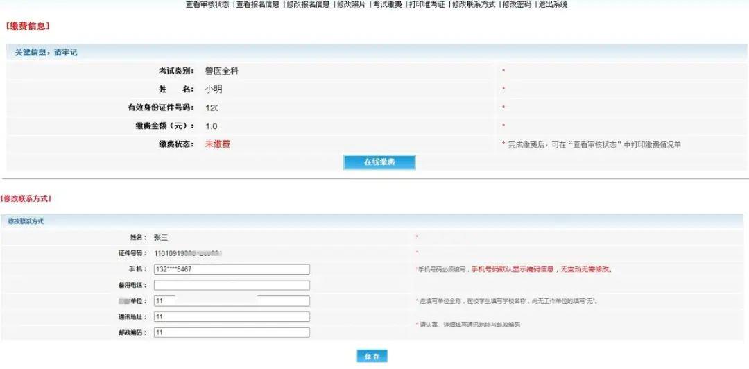 (5)乡村兽医报考人员 乡村兽医报考人员,只需按如下要求填写科目信息、联系方式和 其他信息。