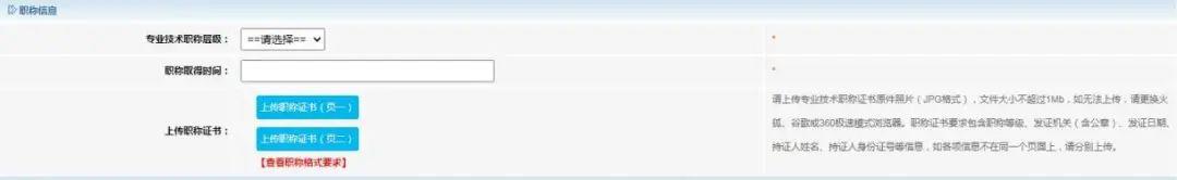 完成填报后,应上传职称证书原件内页照片。通过照片可清晰显 示本人信息、职称名称、发证时间、发证单位等有关信息。