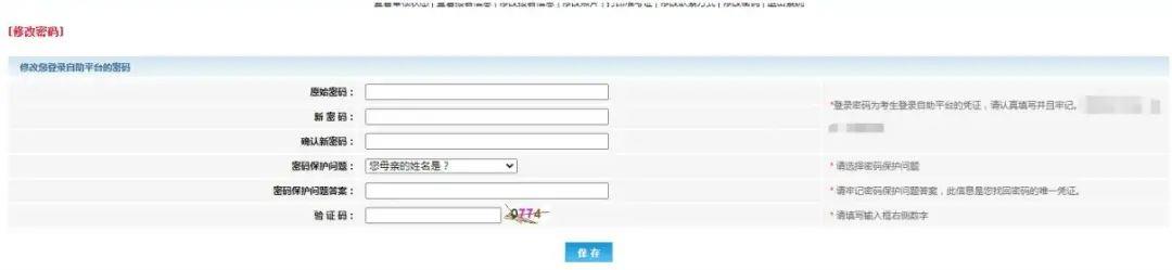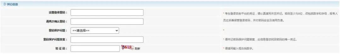 报考人员应认真设置登录自助平台的密码和密码保护问题,并牢记。密码至少为 8 位,必须包含数字和字母。
