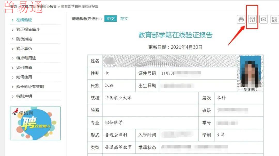 此类人员应通过学信网进行学历认证,以证明其学历的真实性, 并取得《中国高等教育学历认证报告》。学历认证网址如下:
