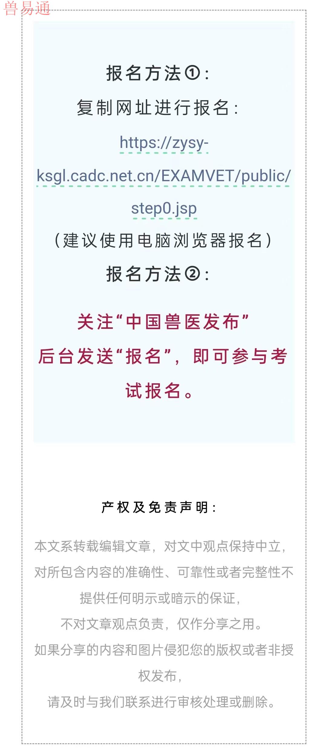 (一)具有大学专科以上学历的人员或全日制高校在校生,专业符合兽医全科类报考专业目录的,可以报名参加兽医全科类考试。