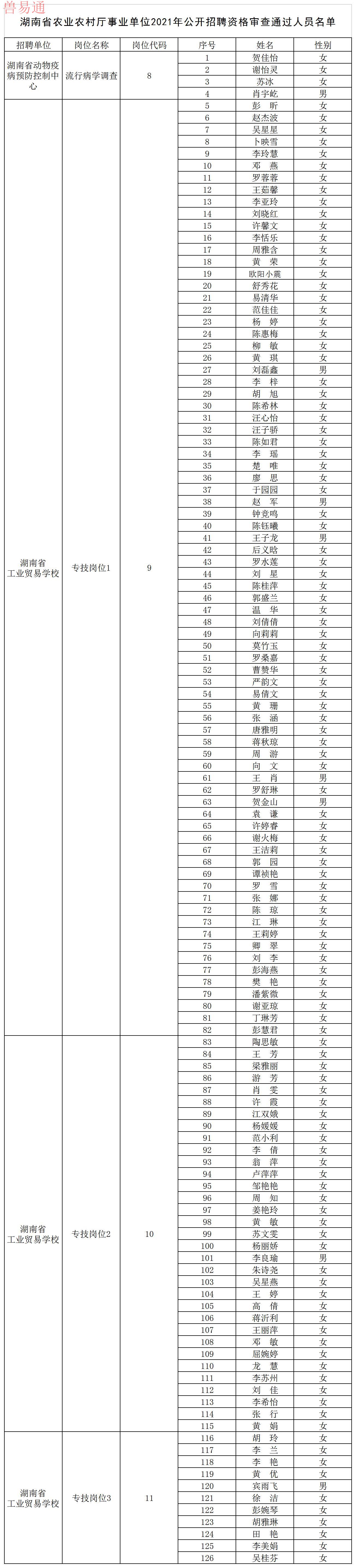 附件:湖南省农业农村厅事业单位2021年公开招聘资格审查通过人员名单
