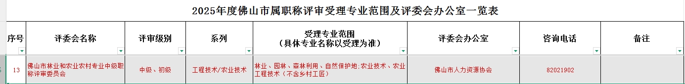 附件2:2025年度佛山市属职称评审受理专业范围及评委会办公室一览表.xls