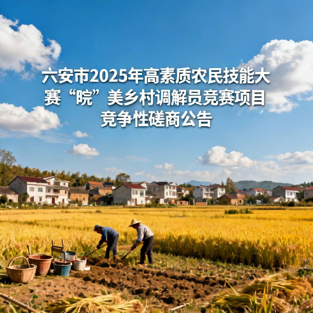根据《中华人民共和国政府采购法》等相关规定,按照《安徽省农业农村厅中共安徽省委社会工作部关于举办安徽省2025年高素质农民技能大赛“皖”美乡村调解员竞赛的通知》(皖农社函〔2025〕668号)要求,六安市农业农村局采用竞争性磋商方式组织采购,确定六安市2025年高素质农民技能大赛“皖”美乡村调解员竞赛项目服务机构,现将有关事项公告如下: