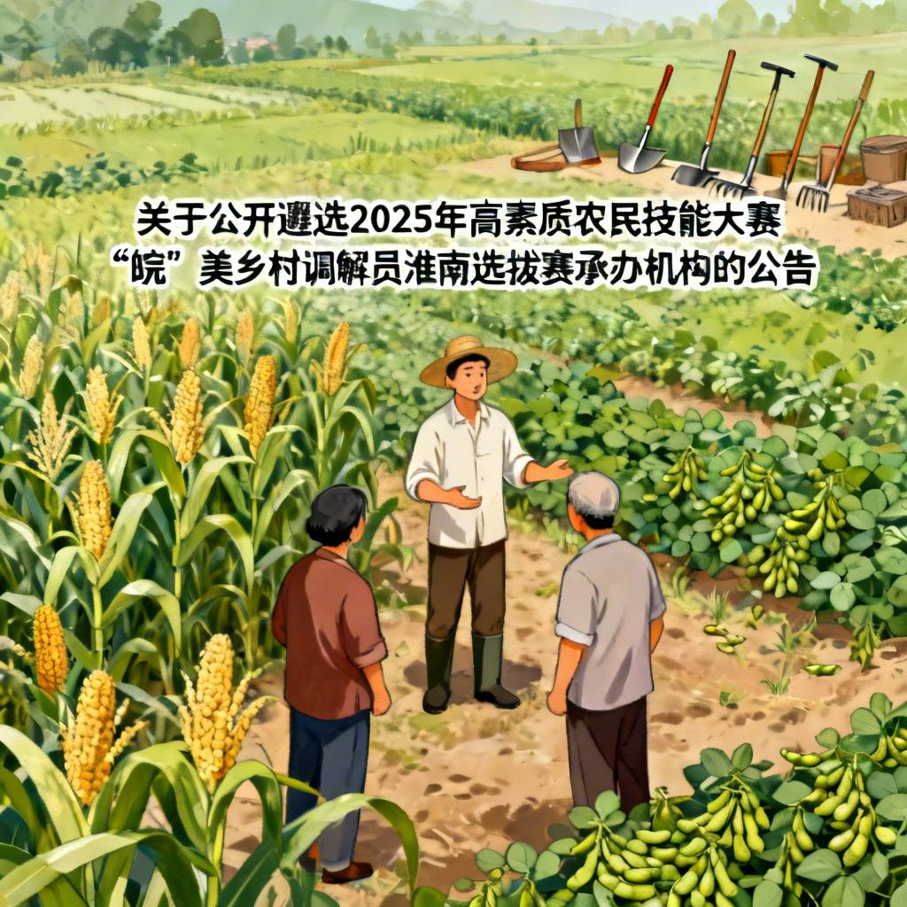 根据《安徽省农业农村厅 中共安徽省委社会工作部关于举办安徽省2025年高素质农民技能大赛“皖”美乡村调解员竞赛的通知》(皖农社函〔2025〕668号)要求,市农业农村局决定举办安徽省技能竞赛—2025年高素质农民技能大赛淮南选拔赛,并面向社会公开遴选承办机构(企业)。现就有关事宜公告如下: