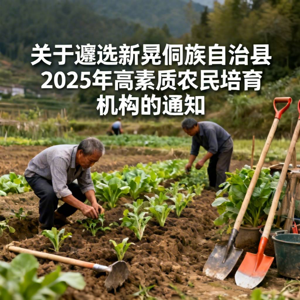 为加快培育农业农村现代化亟需的高素质农民,全面推进乡村振兴,根据《湖南省农业农村厅办公室关于印发〈湖南省2025年高素质农民培育工作实施方案〉的通知》要求,决定遴选新晃侗族自治县2025年度高素质农民培育机构,为确保我县高素质农民培育工作顺利实施。现将有关事项通知如下:
