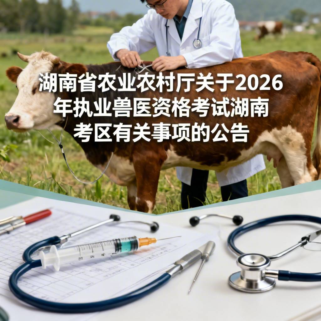 根据《中华人民共和国动物防疫法》和《全国执业兽医资格考试委员会公告》(农医考公告第37号),现就2026年全国执业兽医资格考试湖南考区有关事项公告如下。