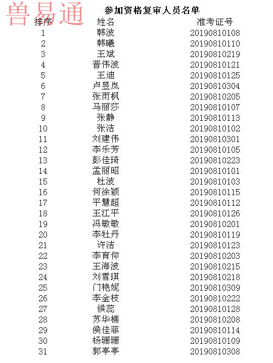 因30名和31名笔试成绩并列,参加资格复审的人员为前31名。名单见附件。