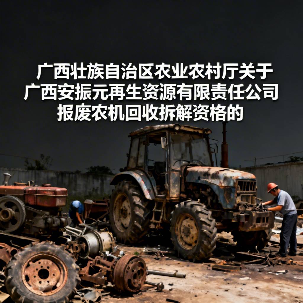 根据《自治区农业农村厅、自治区发展改革委、自治区财政厅关于印发广西推动农业机械报废更新补贴实施方案的通知》(桂农厅规〔2024〕8号)要求,经企业自主申请,属地县级农业农村(农机)部门实地核实认定,所属设区市农业农村(农机)部门备案,并由我厅将广西安振元再生资源有限责任公司的报废农机回收拆解资格认定情况向社会公示。现公示期满,予以通告。