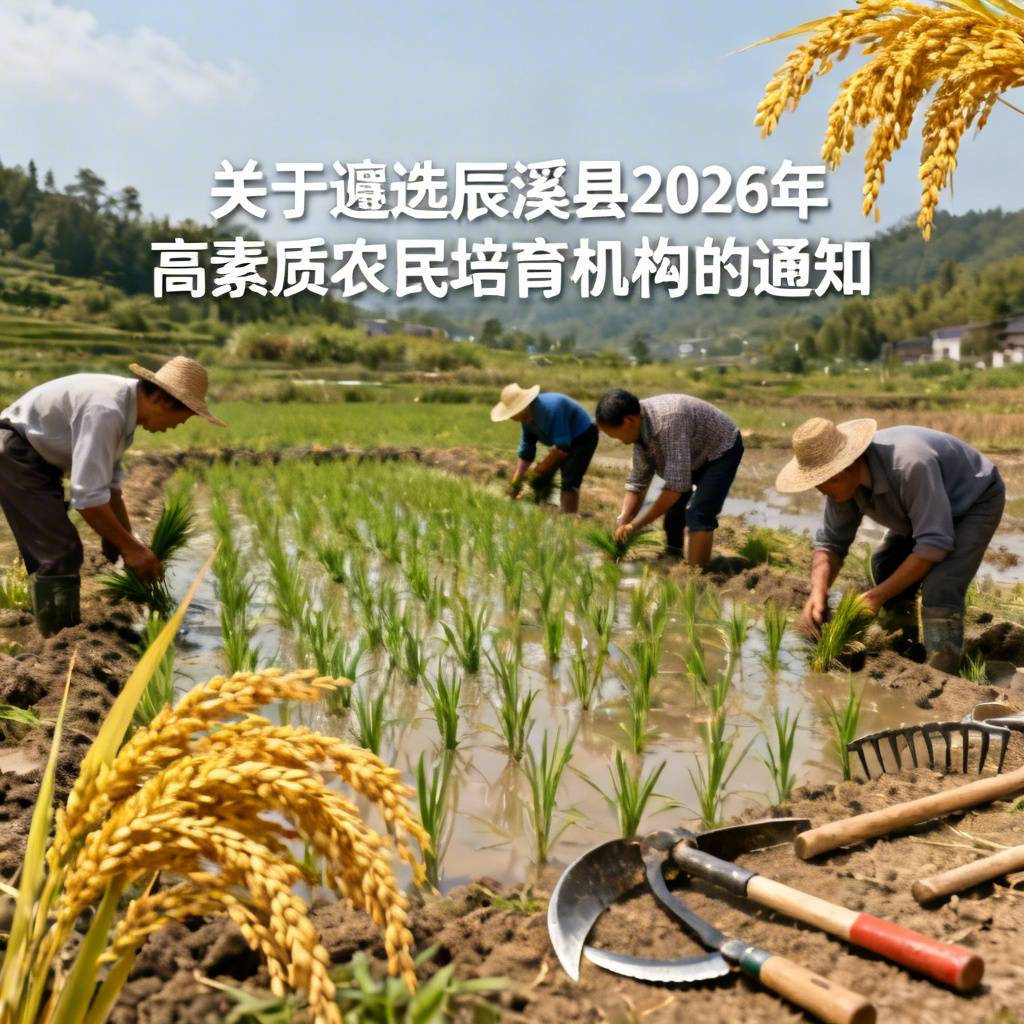 为深入贯彻党的二十大和二十届二中、三中、四中全会精神,落实2025年中央农村工作会议部署,不断夯实粮食安全根基,根据农业农村部2026年高素质农民培育工作有关安排和2025年省农业农村厅第22次党组会精神,决定遴选辰溪县2026年度高素质农民培育机构,为确保我县高素质农民培育工作顺利实施。现将有关事项通知如下: