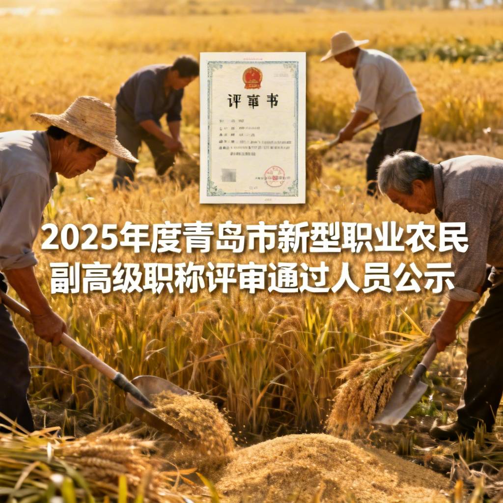 青岛市新型职业农民副高级职称评审委员会对2025年度新型职业农民副高级职称申报人员进行了评审,现根据有关规定,对评审通过人员予以公示。公示时间自2025年12月26日至2026年1月4日,共5个工作日。(上午09:00—12:00 下午13:30—17:30)