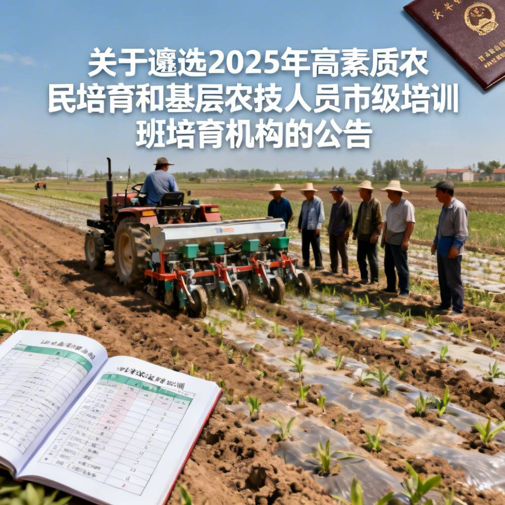 根据农业农村部《高素质农民培育规范(修订)》《高素质农民培育项目管理工作规程(试行)》《农业农村部办公厅关于做好2025年基层农技推广体系改革与建设任务实施方案的通知》(农办科〔2025〕10号)《山东省农业农村厅关于印发<2025年高素质农民培育工作方案>的通知》(鲁农社字〔2025〕8号)等文件精神,按照省农业农村厅工作要求,现向社会公开遴选高素质农民及基层农技人员培训机构,承担2025年市级高素质农民及基层农技人员培训工作。现将有关事项通告如下: