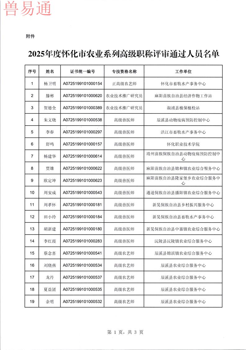 根据职称评审相关文件精神,现公布怀化市2025年度农业系列中(初)级专业技术职务任职资格评审通过结果。公示时间为5个工作日(2025年11月18日至2025年11月24日),公示期间如对公示对象的职称评审有意见,可通过实名信函向怀化市农业系列职改办反映。反映情况要坚持实事求是的原则,以便调查核实。联系电话:0745-2719152邮 箱:1328149723@qq.com怀化市农业系列职称改革工作