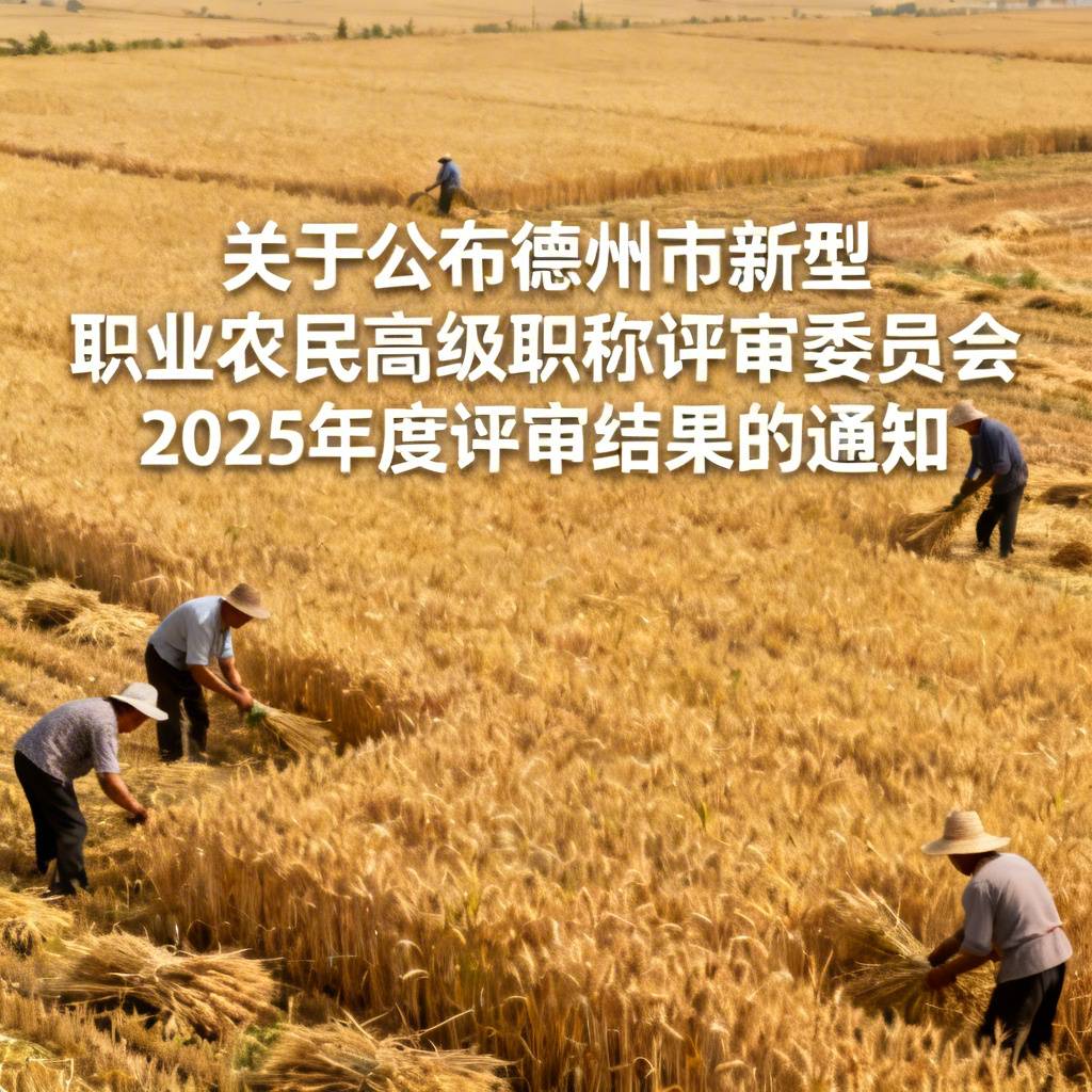 各县(市、区)农业农村局、人力资源社会保障局,天衢新区社会事务管理部:根据德州市人力资源和社会保障局《关于开展2025年度职称评审工作的通知》要求,依据《山东省新型职业农民职称评价标准条件(试行)》《山东省新型职业农民职称评审办法(试行)》等有关规定,为做好德州市2025年度新型职业农民