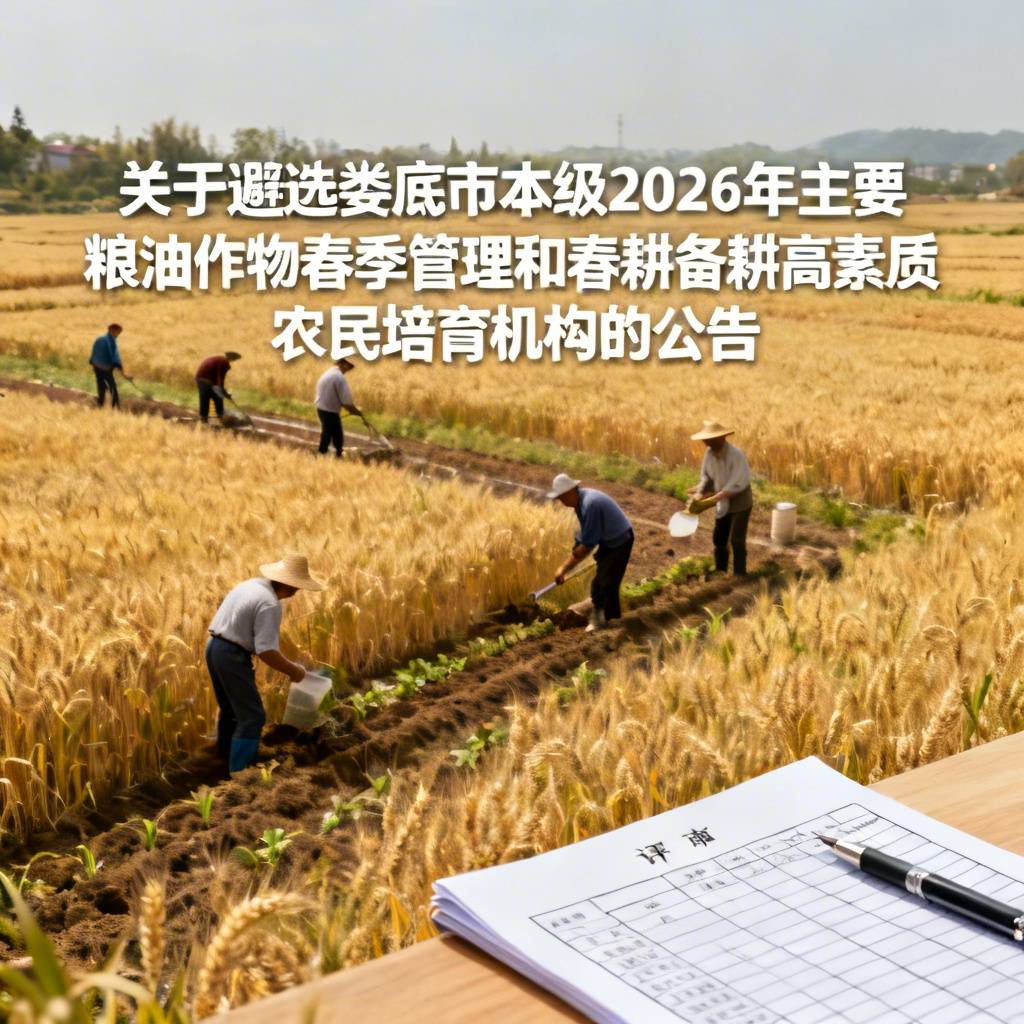 根据中央、省2026年高素质农民培育工作相关安排,现在全市范围内遴选培育机构,承担娄底市本级2026年主要粮油作物春季管理和春耕备耕高素质农民培育任务。现将有关事宜公告如下。