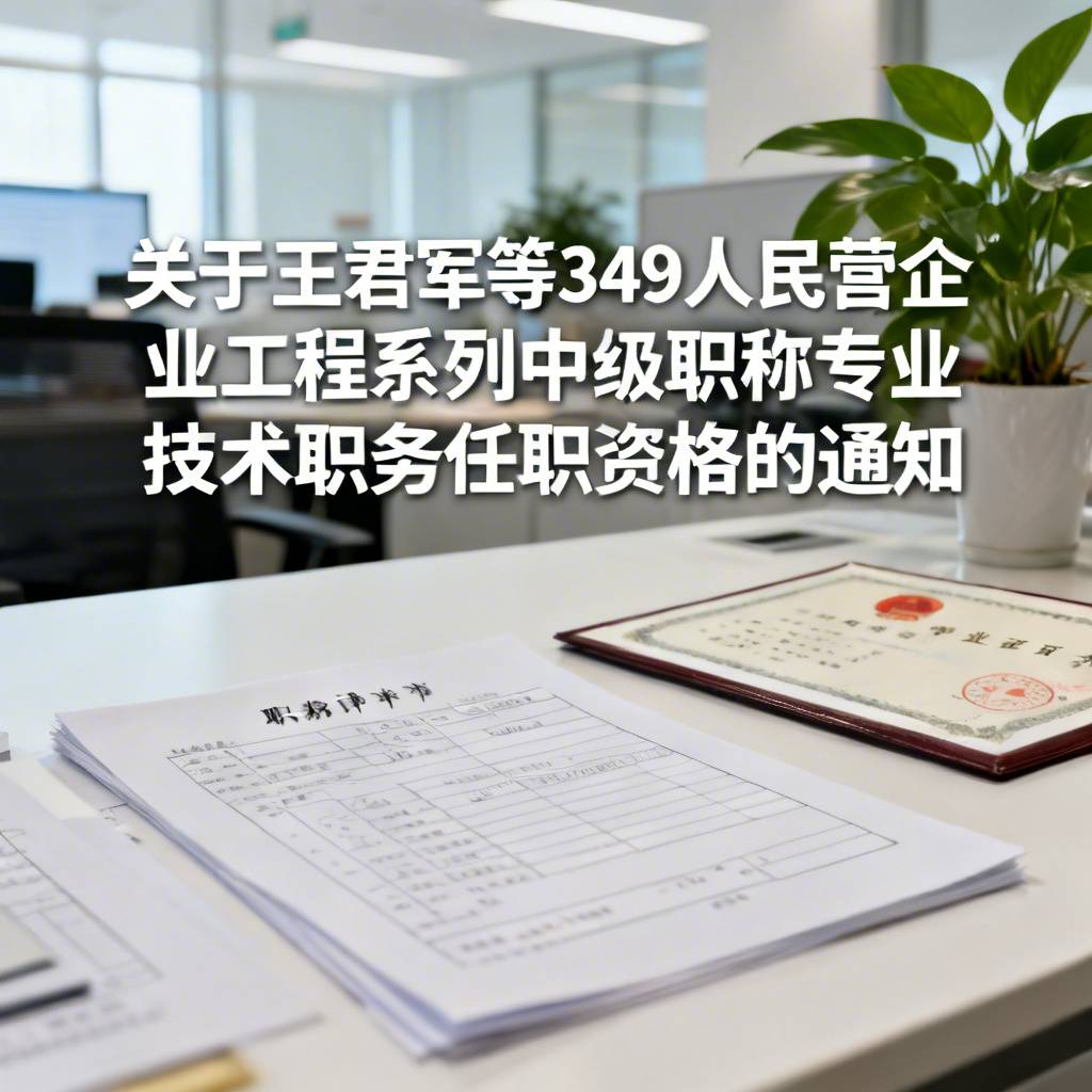 关于王君军等349人民营企业工程系列中级职称专业技术职务任职资格的通知