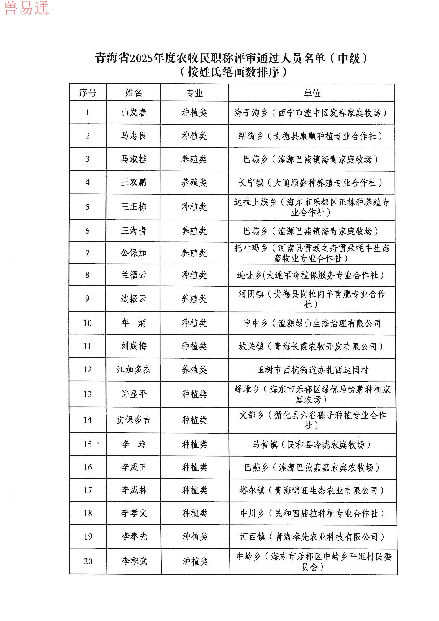 附件:2025年度农牧民职称评审通过人员名单(高级、中级、初级)