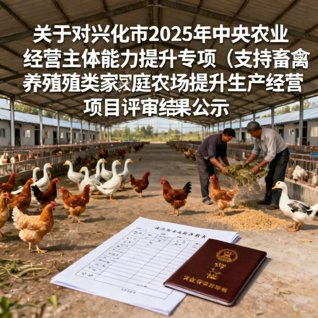 根据《关于下达2025年中央有关资金的通知》(苏财农〔2025〕32号、苏农计〔2025〕15号)《关于印发2025年中央粮油生产保障等专项省级实施方案的通知》(苏农计〔2025〕20号)要求,市农业农村局按照《兴化市财政支农项目管理办法》确定的申报程序,完成了乡镇(街道)申报、资格审查、项目初审、市级专家组评审以及纪检全程监督、局项目管理领导小组会议审议通过等程序后,最终拟确定兴化市根忠畜牧养殖家庭农场等8家单位实施兴化市2025年中央农业经营主体能力提升专项(支持畜禽养殖类家庭农场提升生产经营能力)项目。现向社会进行公示,如有异议,请在公示7日内与市农业农村局联系。