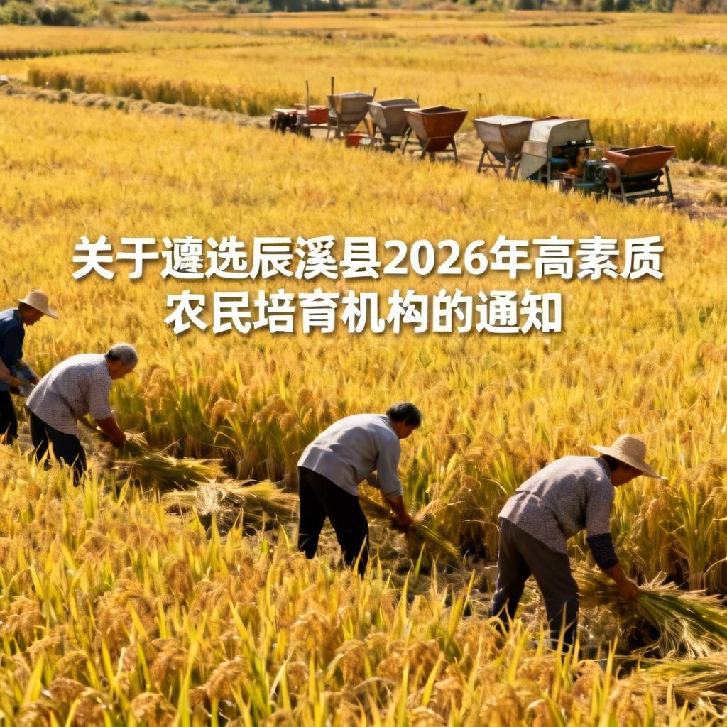 为深入贯彻党的二十大和二十届二中、三中、四中全会精神,落实2025年中央农村工作会议部署,不断夯实粮食安全根基,根据农业农村部2026年高素质农民培育工作有关安排和2025年省农业农村厅第22次党组会精神,决定遴选辰溪县2026年度高素质农民培育机构,为确保我县高素质农民培育工作顺利实施。现将有关事项通知如下: