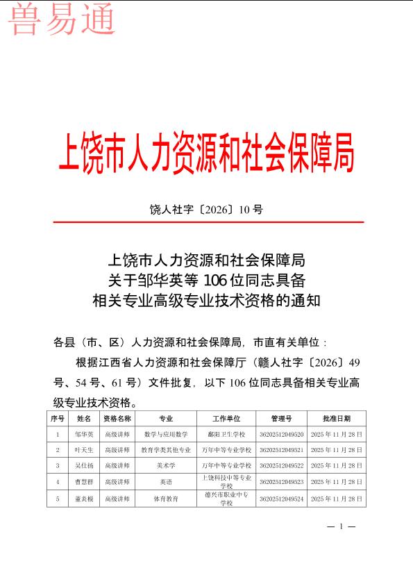 经教师本人申报、单位推荐、县(市、区)教育人社部门和市职称办、市教育局审核,资格审查通过27人。经上饶市人力资源和社会保障局和上饶市教育局协商于7月31日至8月1日组织外市同行专家对推荐人选进行了业绩材料评议(占50%分值)和说课答辩(占50%分值),根据国家和我省深化中小学教师职称制度改革意见、《关于做好2025年度中小学教师职称评审工作的通知》、《关于做好2025年职称评审工作的通知》(赣人社