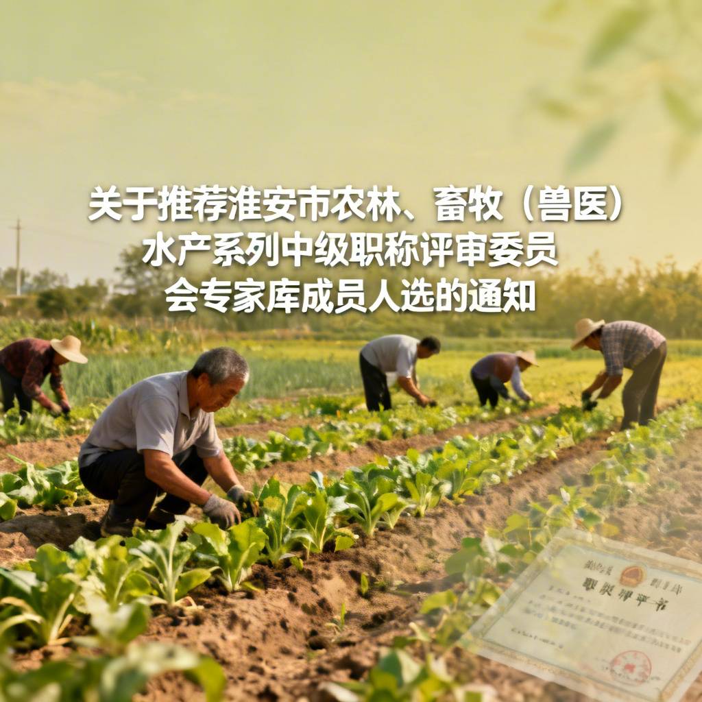 根据中央和省市关于职称制度改革有关要求,拟对淮安市农林、畜牧(兽医)水产中级专业技术资格评审专家库重新核准备案,请各单位按照以下要求择优推荐。有关推荐事项通知如下: