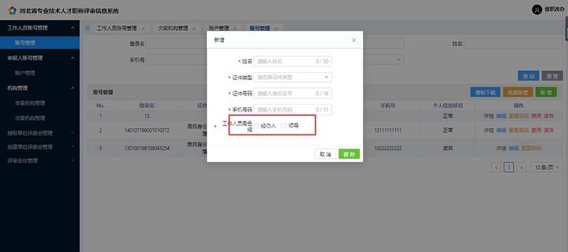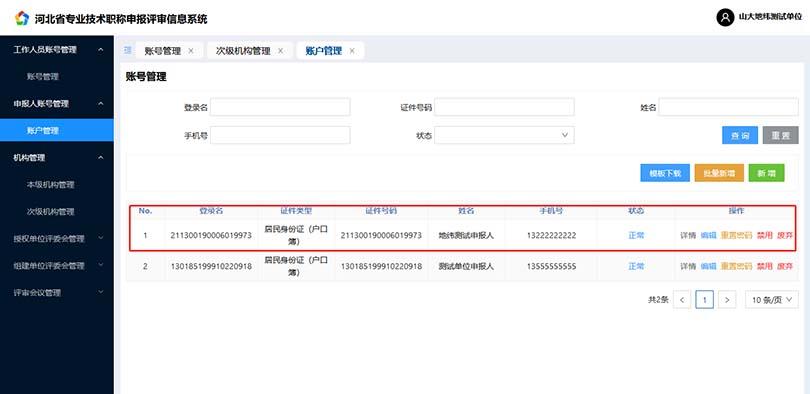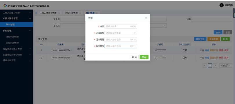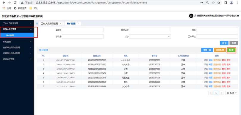 本单位工作人员需创建申报人帐号,创建本单位(不包含下级单位)申报人员的申报信息。